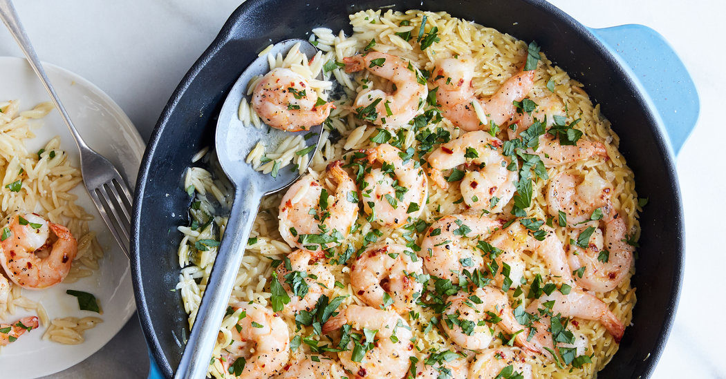 If you think that sopping up the garlicky, winy sauce with a hunk of bread is the pinnacle of shrimp scampi, Ali Slagle is about to rock your world. In her shrimp scampi with orzo (above), it’s the rice-shaped pasta that absorbs all that lovely sauce, a smart tweak that results in this easy, five-star one-pan meal. Before you plunge in, though, make sure to check out the myriad variations in the notes — readers are adding all sorts of things, like feta, pecorino, cherry tomatoes, clam juice and a bag of baby spinach. Ali’s recipe is as adaptable as it is speedy.