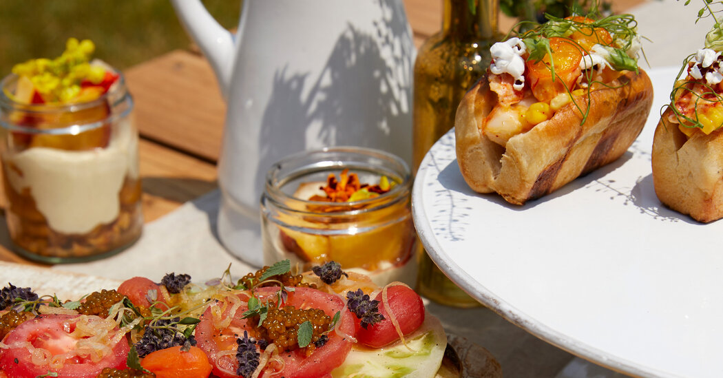 Whether in his own yard or on a job, Nury relies on reimagined summer classics that can be scaled up or down with ease — three of which he shares below. He scatters heirloom tomatoes on a bubbly, grilled sourdough pizza base; lightens the classic New England lobster roll with a sweet summer corn sauce; and nestles grilled peaches into layers of vanilla cream, mascarpone, ricotta and crumbled shortbread cookies. Each recipe features an unexpected, luxurious touch. The tomatoes are sprinkled with caviar, for instance, and the peach cream gets a drizzle of cognac. “I love a mix of high and low,” says Nury. But, he stresses, these extras are purely optional. His advice: Start at the farmers’ market. “If they don’t have it, you probably don’t need it.” Then, says the chef, “Take the extra five minutes to make it look great.”