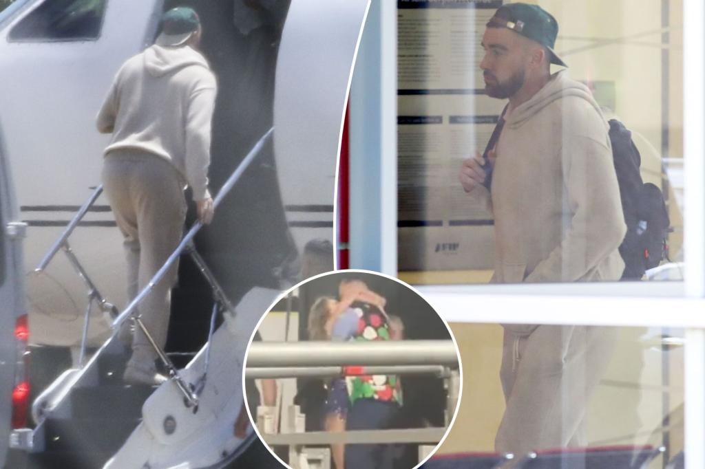 Travis Kelce was spotted boarding a private plane on Sunday in Buenos Aires, Argentina, following a PDA-filled weekend with girlfriend Taylor Swift.