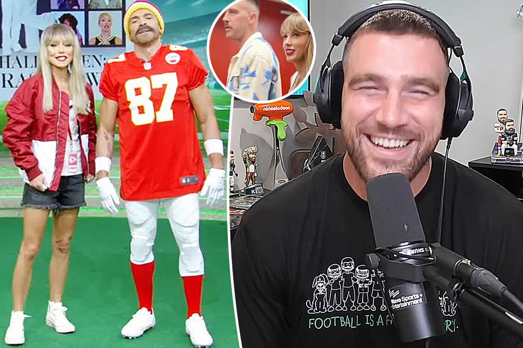 The NFL player reacted to “so many people” dressing up as him and Taylor Swift for Halloween in Wednesday’s episode of his and his brother Jason Kelce’s “New Heights” podcast.