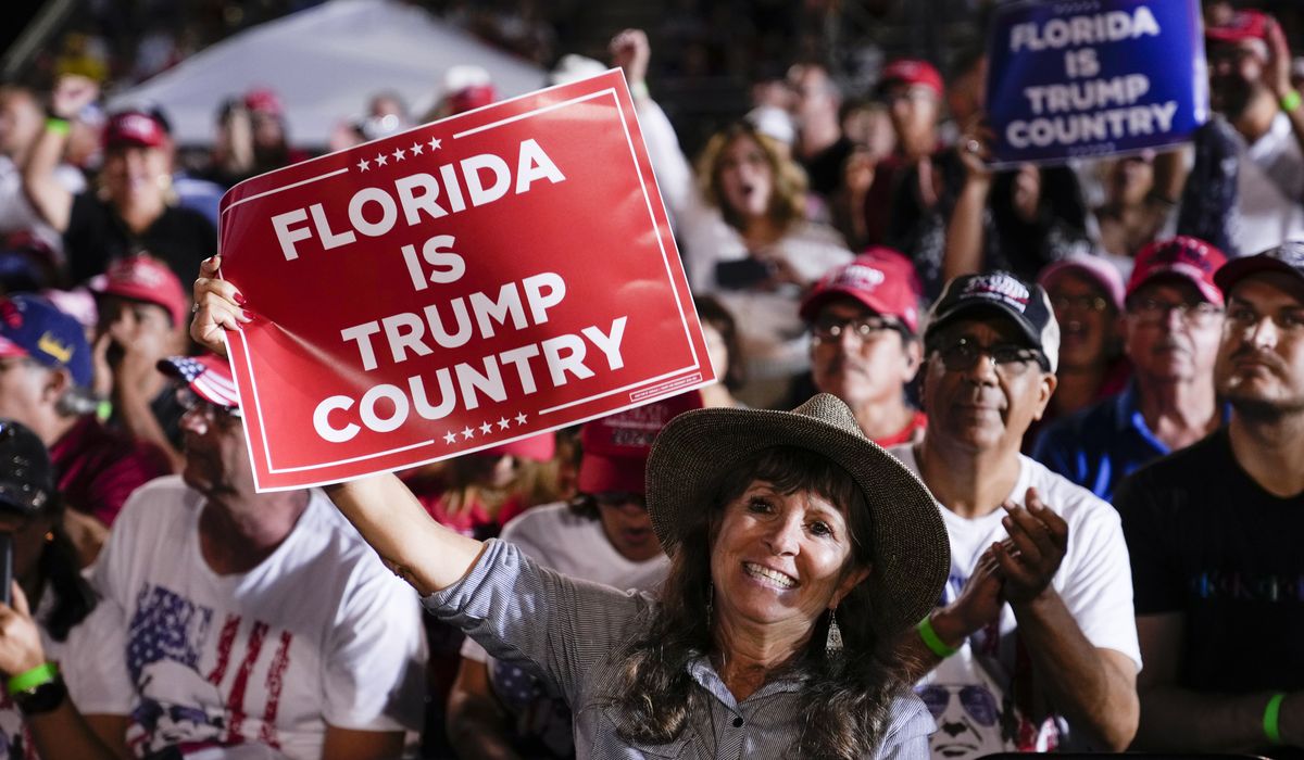 Arkansas Gov. Sarah Huckabee Sanders endorsed Mr. Trump and introduced him to the rally crowd as a “disrupter” who is the “complete and total opposite of Joe Biden.”
