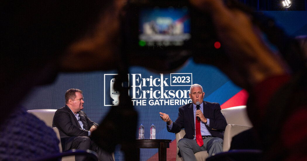 The host, the conservative commentator Erick Erickson, did not include former President Donald J. Trump in the confab, and instead conducted 45-minute “fireside chat” interviews with six of his rivals for the Republican nomination. He told the crowd on Friday that Mr. Trump, and the criminal indictment handed down against him on Monday just 10 miles away, would not be a topic of discussion.