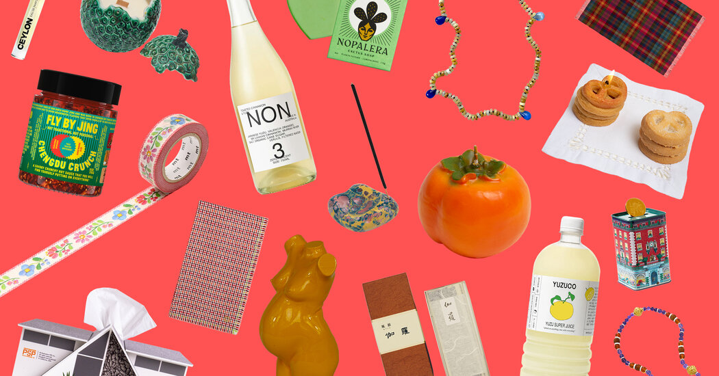 For epicureans on your list who may live outside of a perishable delivery zone, consider a gustatory candle. Ysnay, a Martinique-based candle maker whose name comes from the Taino word for sun or light, offers an assortment of locally crafted organic candles with wooden wicks that burn with a dynamic crackle. Presented in porcelain jars made by Martinican artisans, including one resembling a pocked green-glazed breadfruit, the candles are available with scents like vetiver, frangipani and sweetsop. Gohar World, the outlet for fanciful tabletop goods founded by the sisters Laila and Nadia Gohar in 2020, takes the surrealism one step further with a pair of lifelike treats: A biscuit tin contains what appear to be stacks of Danish butter cookies (actually tea candles made by the Italian company Cereria Introna). Equally deceptive is a brilliantly hued persimmon with a wick for a stem.
