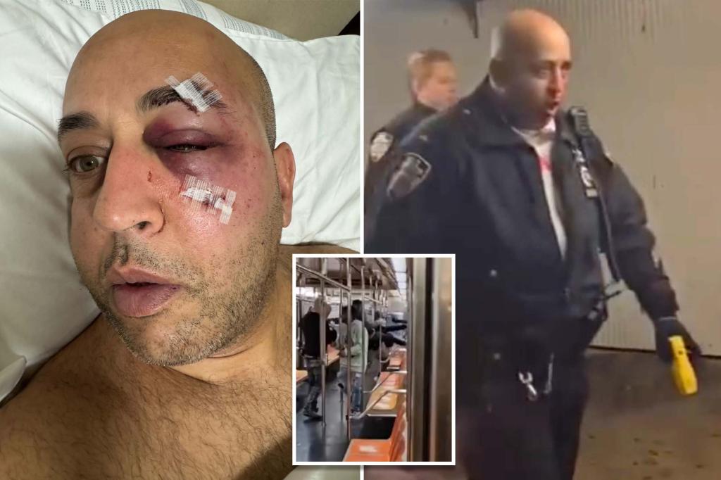 Footage obtained by The Post shows the two men punch the uniformed officer in the face and body multiple times in the corner of the subway car as the lieutenant attempts to fend off both attackers.