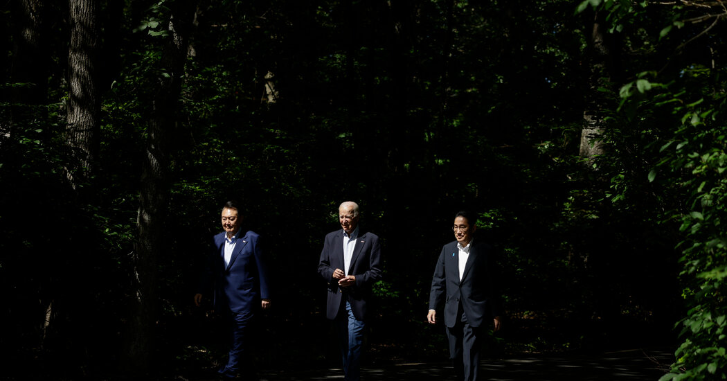 The meeting at the getaway in the Catoctin Mountains of Maryland was a milestone in Mr. Biden’s efforts to stitch together a network of partnerships to counter Chinese aggression in the region. While the United States has long been close to Japan and South Korea individually, the two Asian powers have nursed generations of grievances that kept them at a distance from one another.