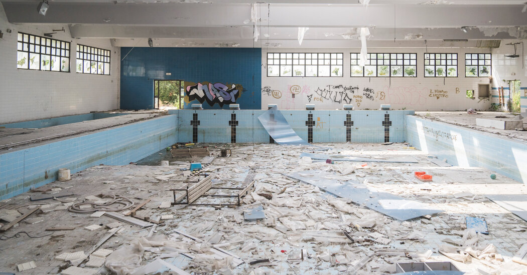 Alrededor de la piscina abandonada se ven cristales rotos, bancas deterioradas, azulejos despedazados y un colchón sucio. La policía local identificó este espacio solitario como uno de los lugares en los que, aseguran, dos niñas fueron violadas varias veces por un grupo de chicos de su misma edad, todos residentes del poblado italiano de Caivano, a las afueras de Nápoles.