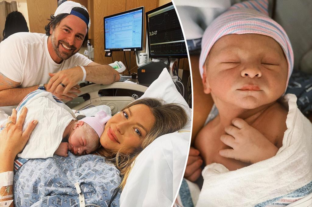 “MESSER RHYS CLARK, born at 12:04 am on September 7th, 7 lbs 14 oz, 19.5 inches,” she captioned a carousel of pictures of her family of four in the hospital.
