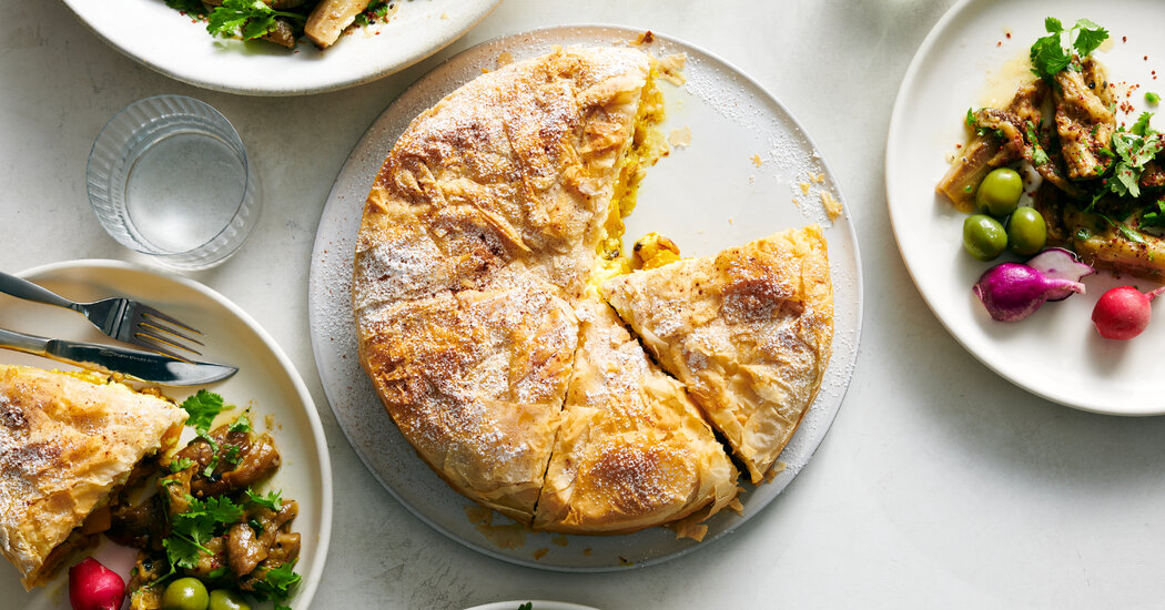 For an impressive make-ahead main course, I wanted a savory vegetable pie, modeled after the classic Moroccan b’stilla, usually made with squab, pigeon or chicken. It isn’t traditional, of course, but this vegetarian version is quite delicious, flaky, buttery and fragrant with spices.