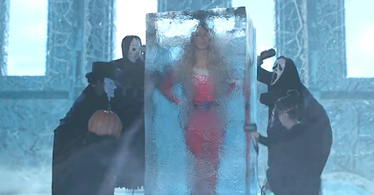 Mariah Carey fast-forwarded to Christmas at midnight Wednesday, sharing a video of a Halloween Jack o’ Lantern defrosting her out of an ice block and into the holiday season. (Watch the clip below.)