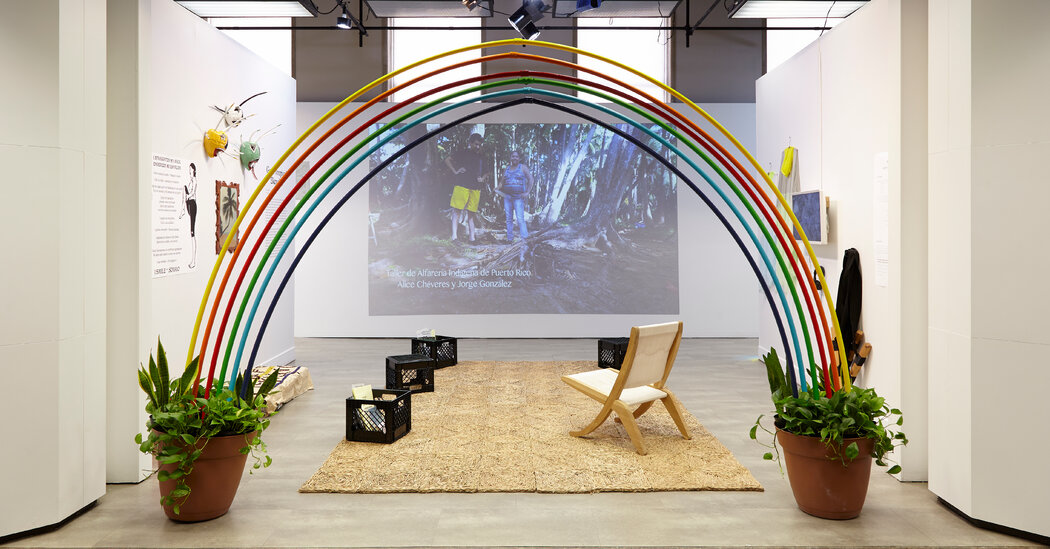 Six years ago, Puerto Rico endured the perfect storm of Hurricane Maria and a fiscal crisis, while decolonization discourse peaked on the mainland. But the art scene there has long been grass roots and adaptable. Embajada (or “Embassy”), the curatorial moniker of Manuela Paz and Christopher Rivera, ambitiously take the recent history of Puerto Rican biennials to Manhattan, with a survey of work previously included in three series of international group shows staged between 2000 and 2016. The artists and issues that emerged there remain active and acute. Several participants, like Edra Soto and Daniel Lind-Ramos, have appeared lately in big Caribbean surveys at the Whitney and the Museum of Contemporary Art Chicago. The show at Mishkin provides some background.
